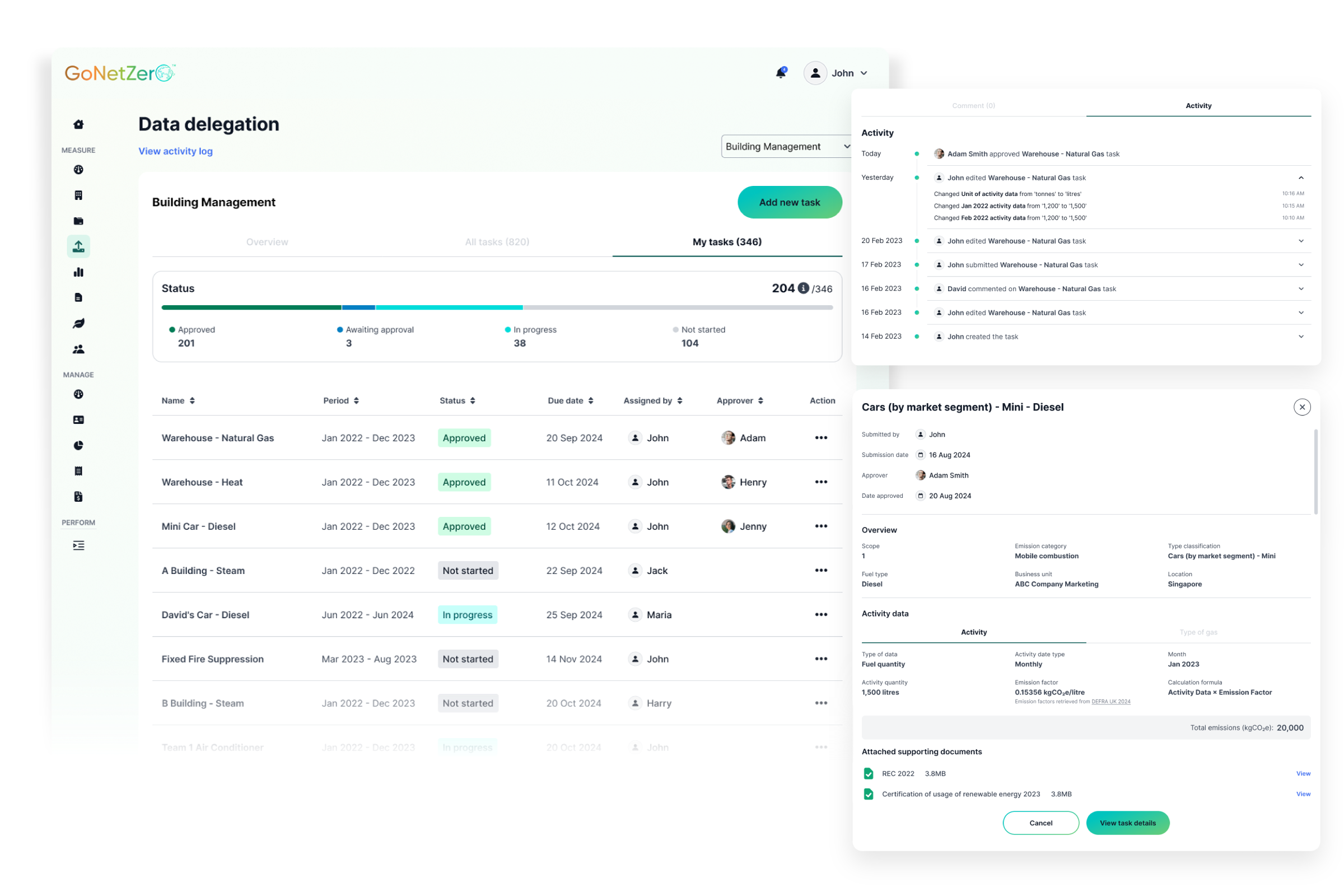 Accelerate your emissions data collection process by delegating data submission tasks across your organisation.